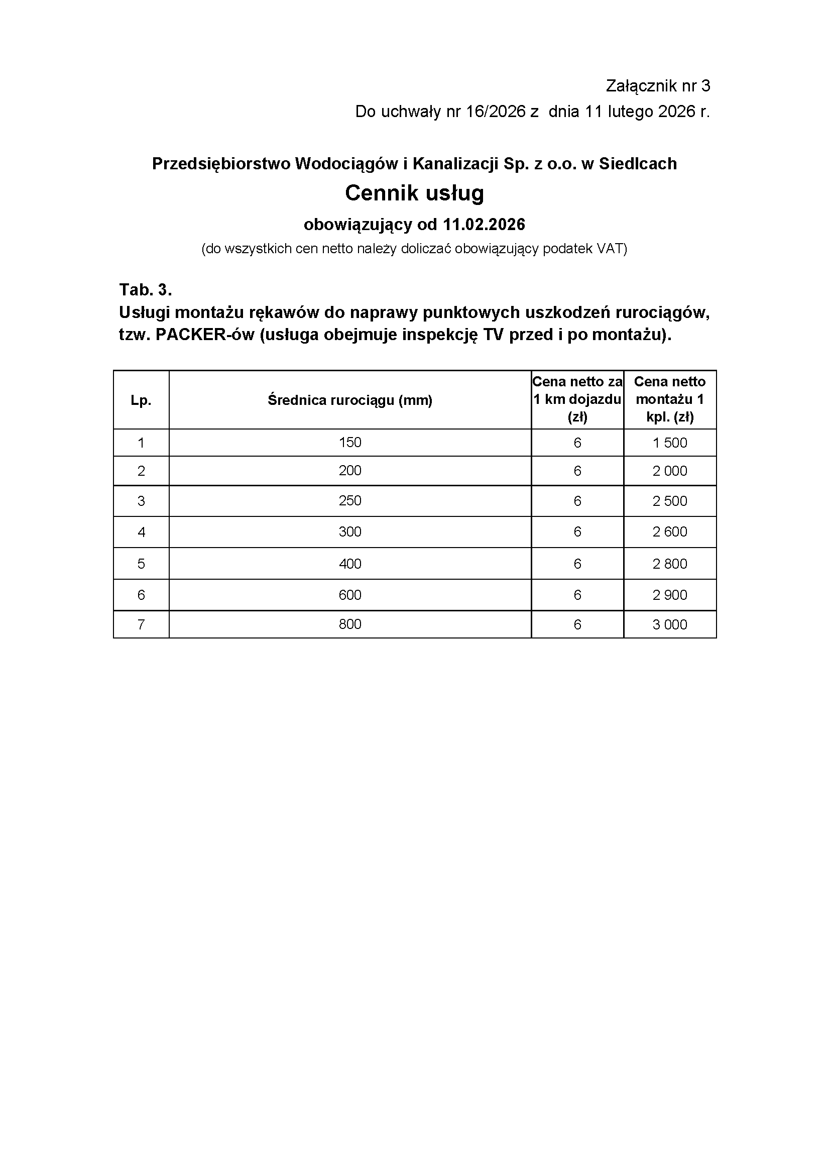 A pomniejsz czcionkę A standardowy rozmiar A powiększ czcionkęZałącznik Nr 4 i Nr 5 do Uchwały Zarządu Przedsiębiorstwa Wodociągów i Kanalizacji Spółka z ograniczoną odpowiedzialnością w Siedlcach Nr 16/2026 z dnia 11 lutego 2026 roku